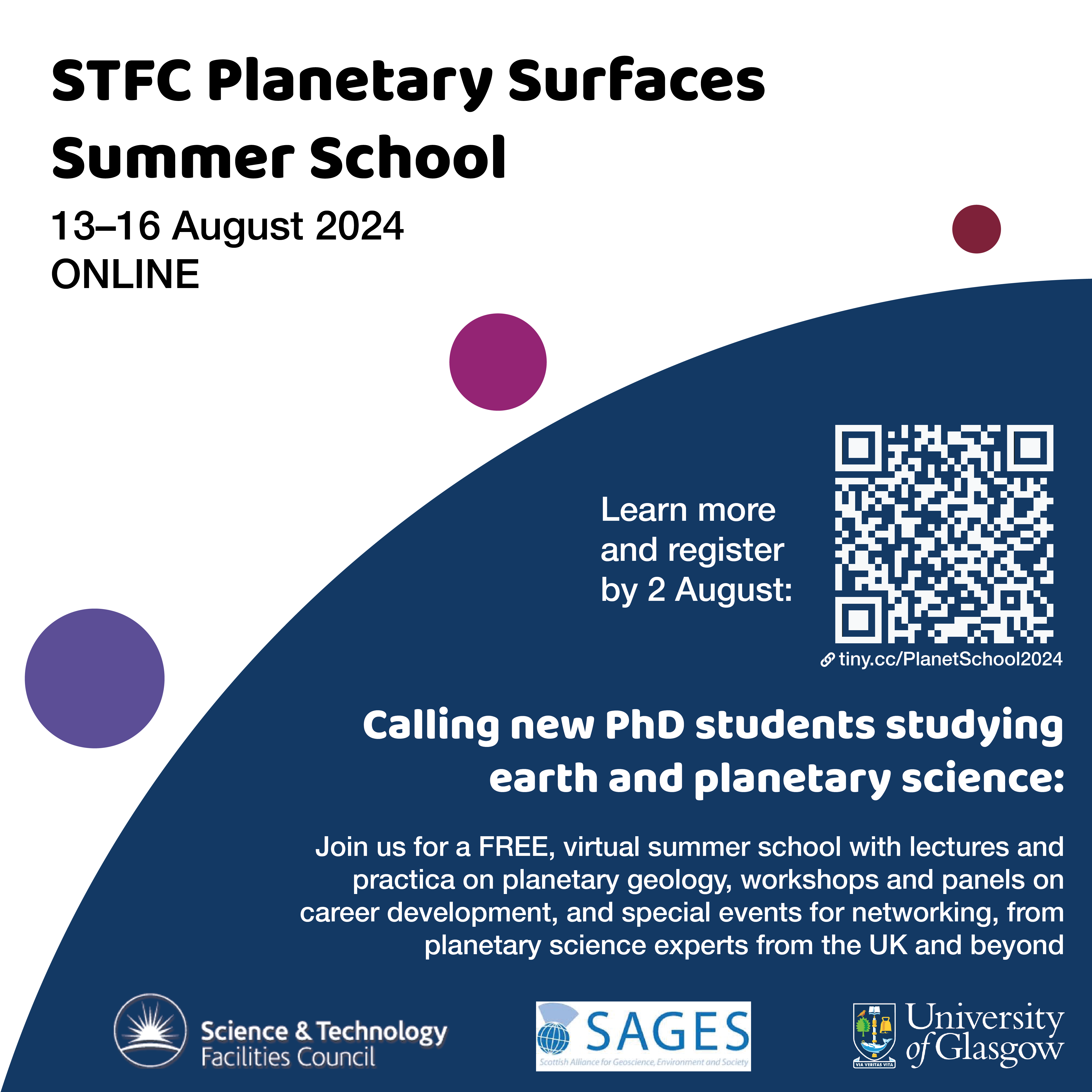 Free and Virtual STFC Planetary Surfaces Summer School 13th-16th August.
